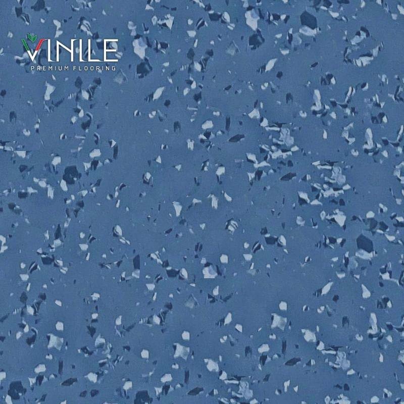 Homogeneous PVC flooring roll in Blue tone color – T Class durable vinyl sheet for commercial and healthcare use.