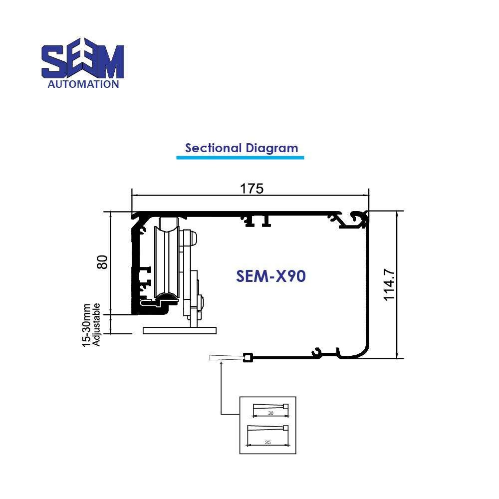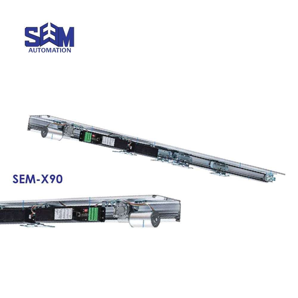 Introducing the SEM X90, an efficient door control system with a powerful 55W brushless motor, handling doors up to 150 kg. With a max opening speed of 2300 rpm/min and advanced safety features, it ensures smooth and quiet operation.