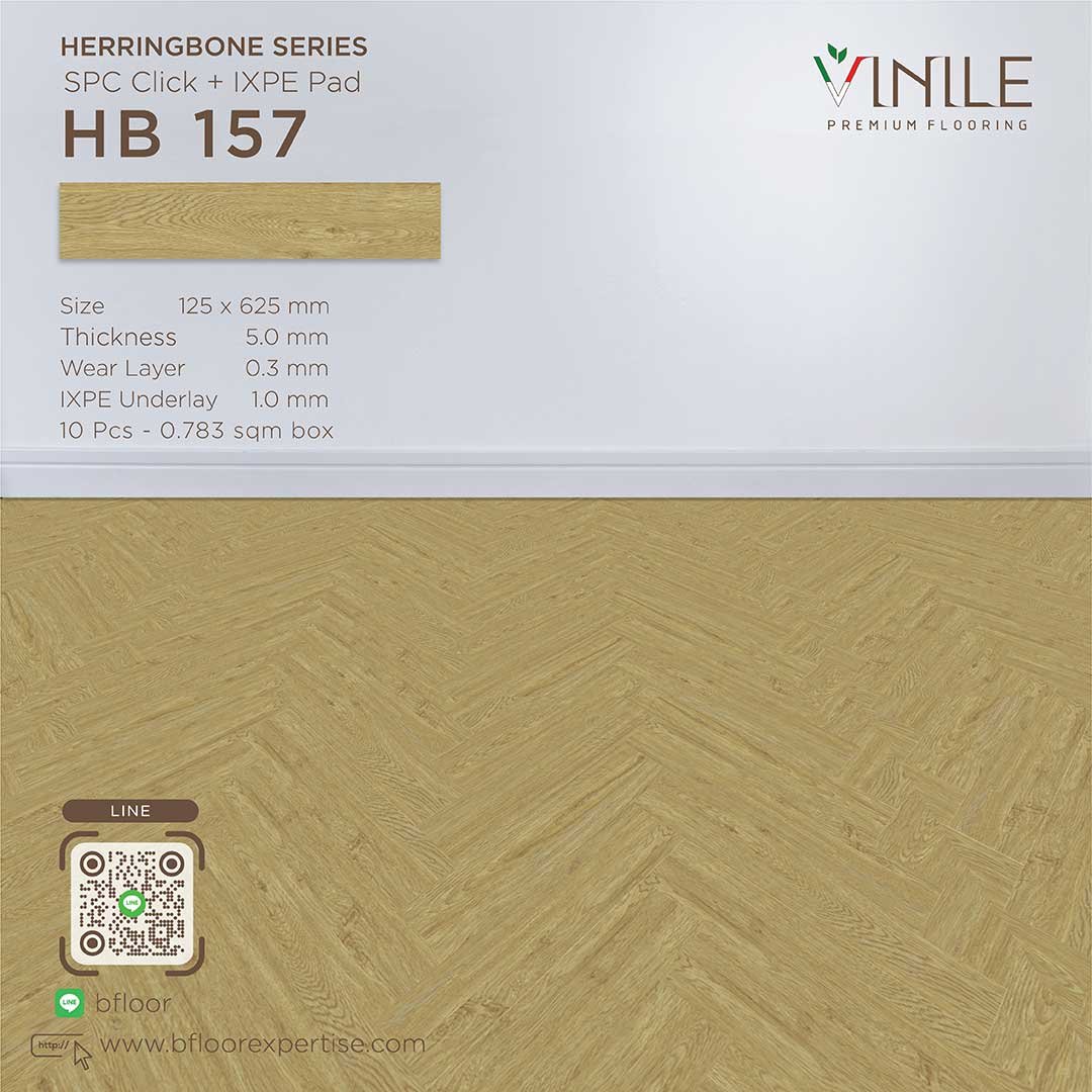 SPC flooring Herringbone series, product code HB 157, 5mm thick with IXPE underlay pad